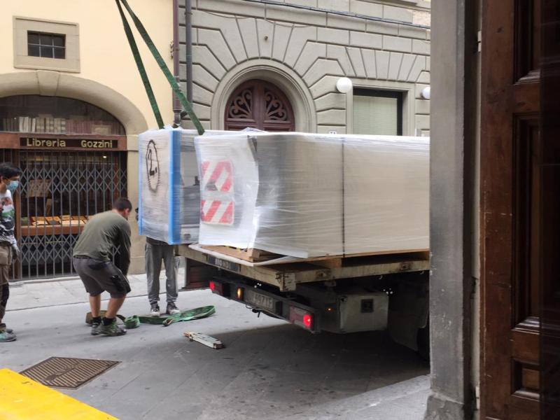 “I lavori all’impianto di areazione della Galleria dei Prigioni e della Tribuna del David procedono regolarmente, come da programma stabilito.” Dichiara con soddisfazione Cecilie Hollberg, direttore della Galleria dell’Accademia. “Tra sabato 16 e lunedì 18 maggio, dopo aver terminato il montaggio dei canali, è arrivata in cantiere la nuova macchina di trattamento aria: cuore pulsante del nuovo impianto, la macchina va a sostituire il precedente macchinario installato all’inizio degli anni ’80 del Novecento e smontato nelle scorse settimane. Contraddistinta da altissime prestazioni in termini di efficienza, rendimento e risparmio energetico, la nuova macchina fornirà agli ambienti museali serviti il microclima idoneo alla conservazione delle opere d’arte, nonché livelli di ricambio d’aria ottimali per la salute e sicurezza degli utenti.”