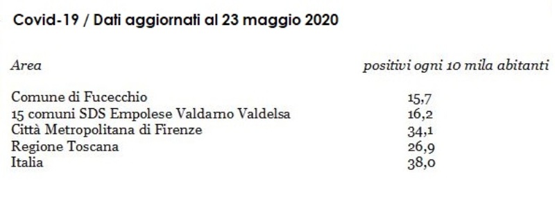 Anche questa settimana Fucecchio, come numero di contagiati in rapporto alla popolazione, rimane al di sotto di tutte le medie nazionali, regionali e di area.