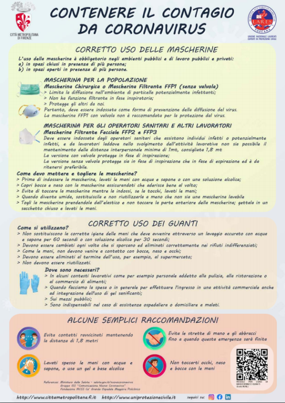 "Abbiamo preparato una promemoria in forma di volantino - spiega Massimo Fratini, consigliere della Città Metropolitana di Firenze delegato alla Protezione civile - Proprio perché impegnati nella distribuzoione delle mascherine, in coordinamento con la Regione Toscana, ci siamo accorti che non sempre i dispositivi sono usati in modo corretto e, soprattutto, che non di rado si utilizzano mascherine non adatte perché non si conoscono le giuste tipologie".