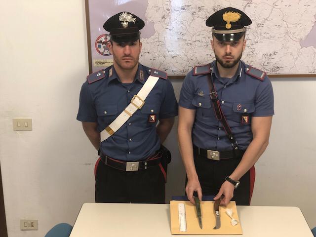 Alla vista dei due militari, il trentenne ha tentato di nascondere, nell’intercapedine fra il sedile di guida e il cambio, una busta di cellophane di colore bianco. Al suo interno circa un grammo di marijuana. Approfondendo il controllo, all’interno della portiera lato guidatore erano presenti due coltelli, uno a scatto e l’altro a serramanico, aventi entrambi una lama di circa 10 cm di cui il ragazzo non sapeva giustificare il possesso, non avendo regolare porto d’armi.