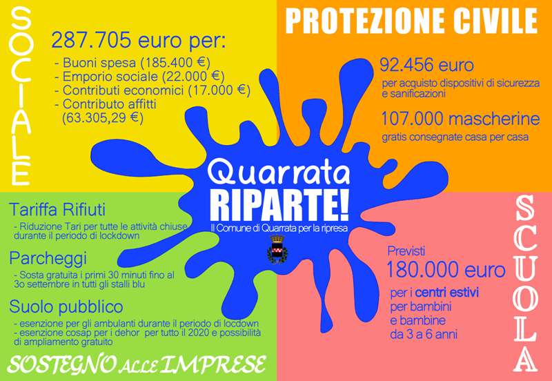 Con il nome di “Quarrata riparte” l’Amministrazione comunale quarratina ha riassunto il pacchetto di misure attivate per sostenere la ripartenza di famiglie ed imprese, dopo la crisi generata dal Coronavirus.
