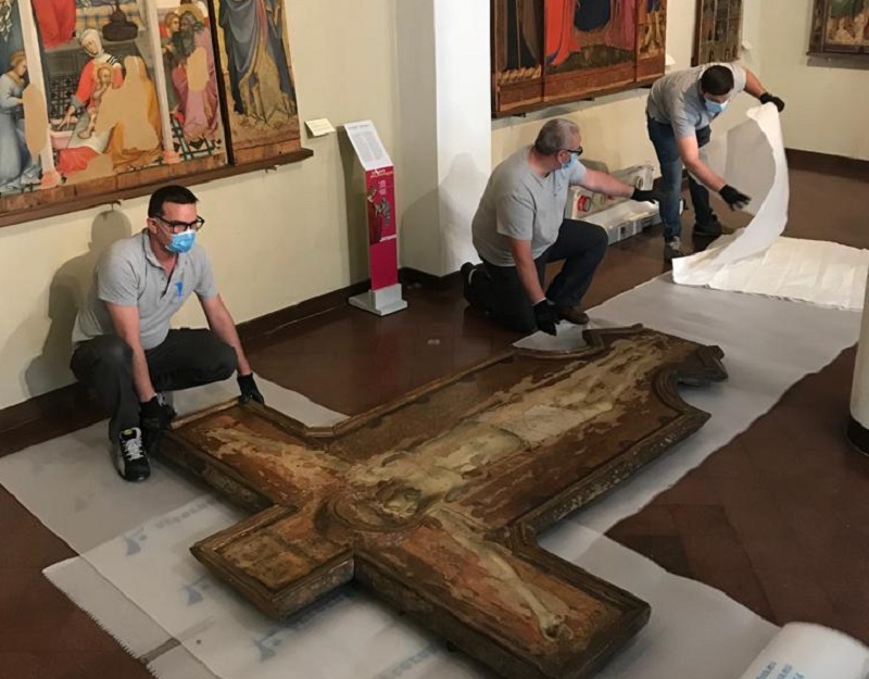 Appena terminate le prescrizioni per l’emergenza Covid 19, riprendono i progetti di restauro programmati per la Pinacoteca nazionale di Siena con il trasferimento in sicurezza della Croce dipinta del Carmine di Siena di Ambrogio Lorenzetti presso il laboratorio di restauro a Firenze della restauratrice incaricata di realizzare l’intervento. La Fondazione Friends of Florence riconferma la generosa e costante collaborazione con la Direzione regionale musei della Toscana, diretta da Stefano Casciu, finanziando il restauro che sarà eseguito dalla restauratrice Muriel Vervat e che è stato fortemente voluto da Cristina Gnoni Mavarelli, Maria Mangiavacchi ed Elena Pinzauti rispettivamente ex direttrice, curatrice e restauratrice della Pinacoteca nazionale di Siena.