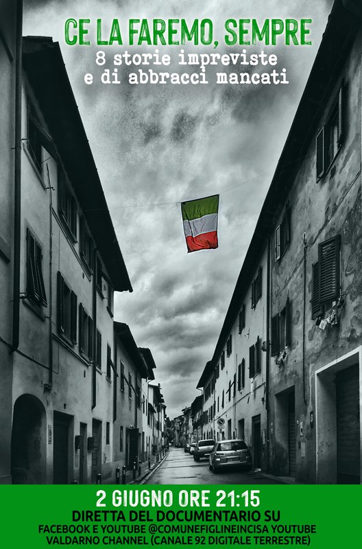 “In tutte queste storie c’è un filo di malinconia – spiegano la sindaca Giulia Mugnai e la presidente del Consiglio comunale, Silvia Fossati -, ma tutte ci lasciano un messaggio di speranza perché adesso, dopo un’emergenza che segnerà le nostre abitudini, la vita riprende. E questo è un messaggio che ci piace condividere con i nostri concittadini nel giorno più importante per le nostre comunità, la Festa della Repubblica: un giorno che a Figline e Incisa Valdarno veniva festeggiato in piazza Ficino con musica e fuochi d’artificio e che nel 2020 abbiamo deciso di onorare presentando questo documentario che racconta storie di persone comuni, persone di Figline e Incisa, persone d’Italia”.