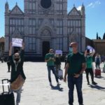 Tra frontiere bloccate per contenere la pandemia e tutte le misure di sicurezza del caso al momento, dopo il lockdown e il ritorno a lavoro di molti settori, molte attività dedicate al turismo tra cui le agenzie di viaggi non sembrano vedere un futuro certo sul loro cammino. Per questo e per molti altri motivi oggi, mercoledì 27 maggio 2020, Fiavet Toscana e molti lavoratori delle agenzie di viaggi operative sul suolo del Granducato sono scesi in piazza Santa Croce a Firenze alle 10.30. Secondo i presenti erano circa 300 i partecipanti in fronte alla basilica dell'omonimo quartiere fiorentino, tutti rispettosi del distanziamento sociale imposto dalle norme anti contagio e scanditi da t-shirt bianche, rosse e verdi, come il tricolore.