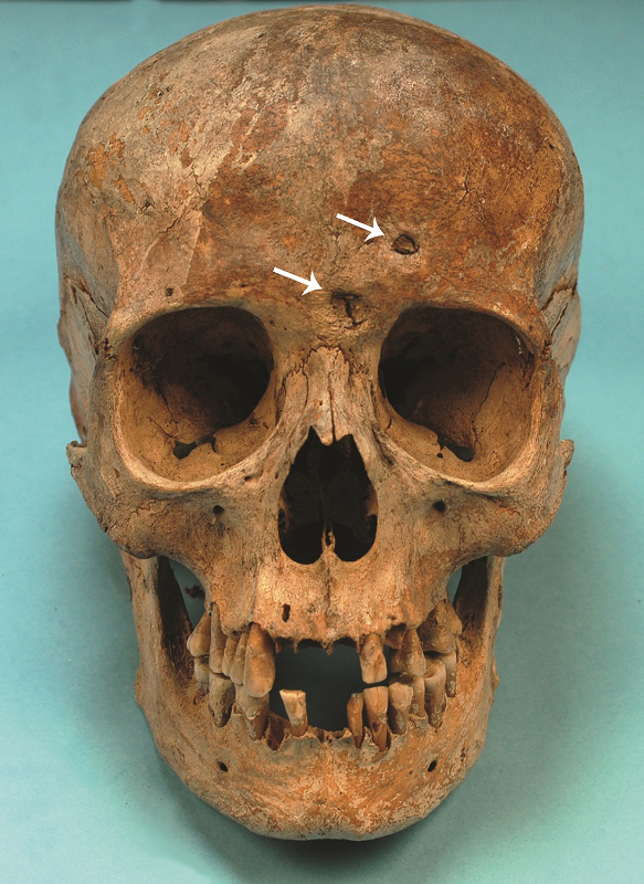 Lo studio dello scheletro di Maria Salviati ha rivelato i segni inequivocabili della sifilide venerea nella sua fase terziaria: sono ad esempio evidenti le lesioni sifilitiche sull’osso frontale del cranio.