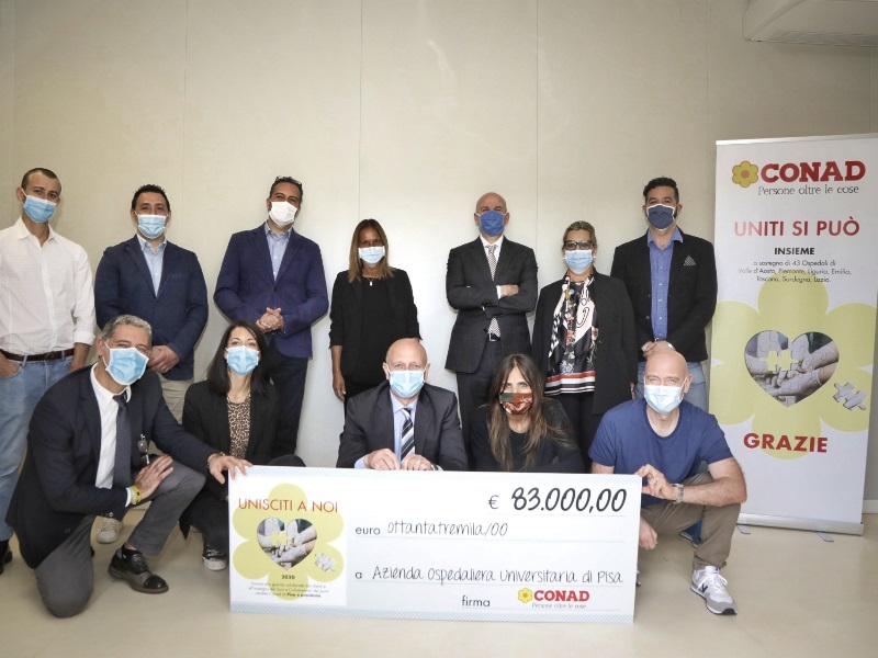 La solidarietà ha un cuore grande e da buoni frutti come testimonia il risultato raggiunto attraverso la raccolta fondi “Unisciti a Noi”, campagna solidale di Conad Nord Ovest, dei suoi soci e collaboratori che in poco meno di un mese, grazie anche alla generosità di oltre 8.000 clienti, ha permesso di raccogliere 83.000 euro da destinare all’Aoup-Azienda ospedaliero-universitaria pisana.