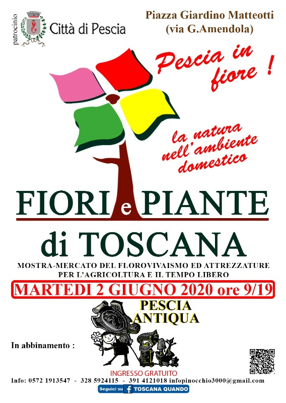 Pescia Antiqua si replica con una edizione speciale in programma martedì 2 giugno, dalle ore 9 alle ore 19, in piazza Matteotti (quella con la fontana al centro) e nell'adiacente via Amendola, ospitando anche dei banchi di fiori e piante, da sempre il simbolo della città.