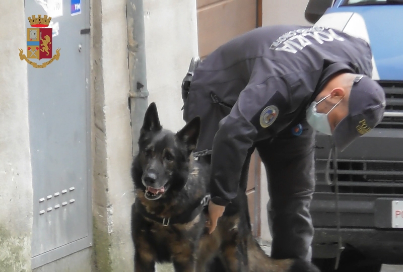 Nel corso delle perquisizioni, eseguite dai poliziotti della Squadra Mobile anche con le Unità cinofile antidroga, in uno degli appartamenti sono stati rinvenuti 10 grammi circa di marijuana, 2 grammi circa di cocaina, due bilancine di precisione e diverso materiale per il confezionamento delle dosi di stupefacente, oltre a 1080 euro in contanti, probabile provento dell’attività di spaccio.