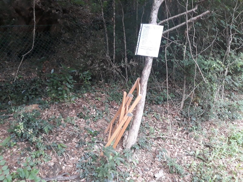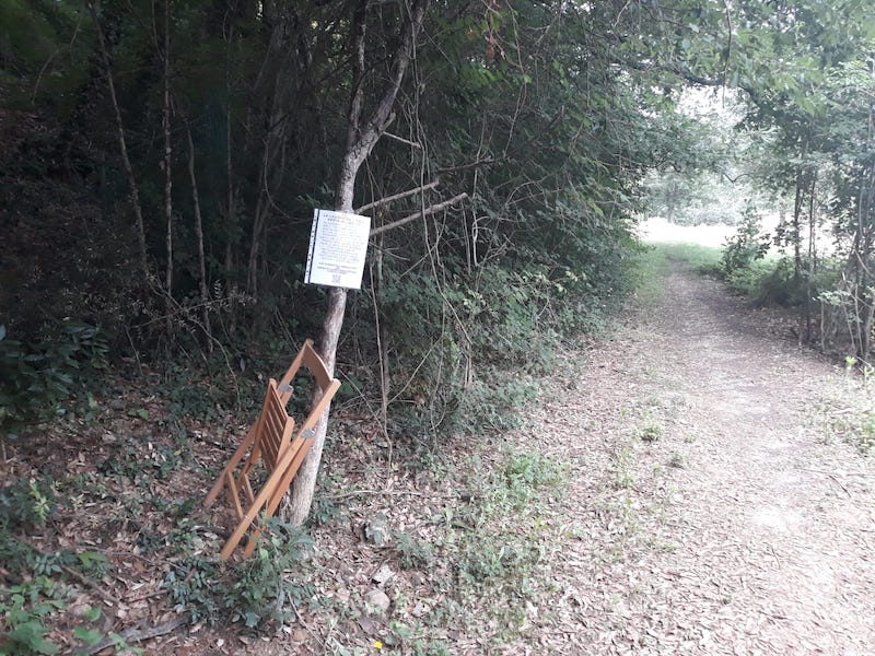 La strada è difficilmente percorribile con le auto, meglio in moto, molto meglio a piedi o in bici. A metà del tratto che va da via Porto alle Lenze a via Valdinievole Nord, in un'area da tempo nota come Valgrande, ecco la sedia. Si trova appoggiata a un albero, con tanto di foglietto illustrativo. Ci si può mettere a sedere, chi vuole può farsi un selfie, ma l'importante è non rubarla o scagliarla lontano.