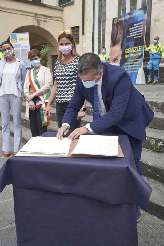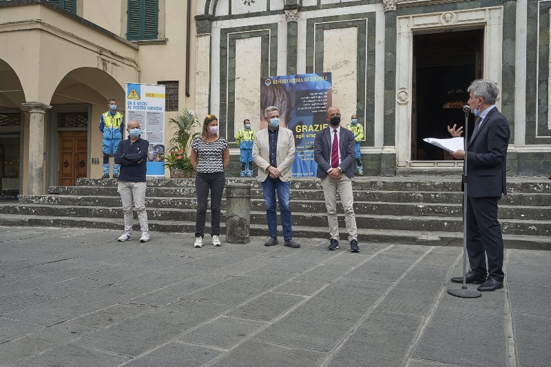 La cerimonia è iniziata con un dovuto momento di raccoglimento per i morti di Covid-19. Presenti cittadini, imprese che hanno contribuito con le loro donazioni a sostenere il momento di emergenza sanitaria e molte autorità, tra cui il sindaco di Empoli Brenda Barnini, il presidente del consiglio regionale Eugenio Giani, l'assessore regionale Stefania Saccardi, il consigliere regionale Enrico Sostegni, l'onorevole Dario Parrini e il Provveditore della Misericordia di Empoli Gionata Fatichenti. Tanti gli interventi in piazza, intervallati dalle testimonianze video dei volontari e dei medici che hanno raccontato cosa ha significato il Covid-19 per loro e come è stata fronteggiata in prima linea l'emergenza, un lavoro quotidiano e nell'ombra, forse dato per scontato, ma che ha salvato vite e permesso di lasciarci alle spalle questa tragedia.