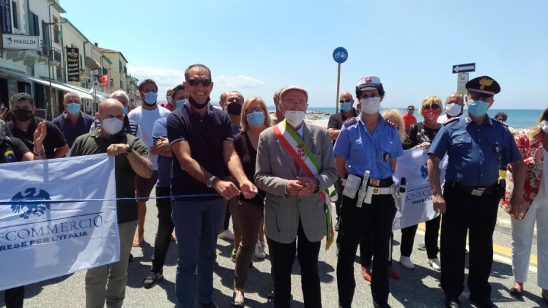 Alle 12 in punto di questa mattina è scattata la pedonalizzazione estiva del lungomare di marina di Pisa. Autorità e imprenditori, forze dell'ordine e polizia municipale, ma anche semplici cittadini, si sono ritrovati insieme per il taglio del nastro e un brindisi augurale. Per l'amministrazione comunale, con tanto di fascia tricolore, presente l'assessore alla viabilità Massimo Dringoli che ha spiegato come la chiusura del lungomare rappresenta un momento importante, che noi come amministrazione vediamo favorevolmente. Resta il fatto che questa decisione andrà verificata proprio attraverso questa sperimentazione ed eventualmente migliorata, con l'obiettivo di agevolare la percorribilità e alzare la qualità della vita sul lungomare di marina di Pisa. I pisani sono molto attaccati a questo lungomare, che consente un rapporto diretto e straordinario con il mare, e noi volgiamo tutelare proprio queste eccellenza”.