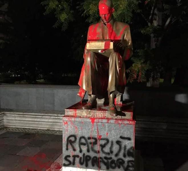 È stata imbrattata con della vernice rossa la statua dedicata a Indro Montanelli, collocata nel giardino di via Palestro, nel centro di Milano. Quattro barattoli di vernice rossa e le scritte 'Razzista, stupratore' alla base della statua che raffigura il giornalista. Ancora una volta il monumento è stato deturpato, dopo l'8 marzo dello scorso anno. Allora le femministe, oggi il movimento nato dalle proteste antirazziste in seguito alla morte di George Floyd. Indro Montanelli faceva discutere già in vita e ancora oggi a quasi 20 anni dalla morte non si placano le polemiche per quello che fece durante le guerre coloniali. Le richieste di rimozione della statua del giornalista erano giunte da più parti all'attenzione del sindaco Giuseppe Sala, che si è detto non favorevole. Da Fucecchio, patria di Montanelli e della sua dinastia che annovera Giuseppe, prozio patriota, il No alla rimozione è arrivato dal sindaco come pure dal centrodestra e dalla Fondazione Montanelli.
