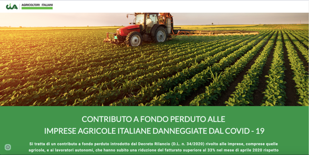 Nasce un mini-portale (https://ciaiutaleimprese.cia.it/) a disposizione delle aziende del settore agricolo, per chiedere assistenza e consulenza sul contributo a fondo perduto previsto dal Decreto Rilancio e destinato alle imprese danneggiate dal Covid-19.