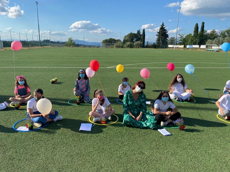Messaggi profumati, palloncini e colombe in volo. Il saluto a distanza, organizzato dal Comune di Greve in Chianti, nei campi sportivi di Greve e Strada in Chianti, ha regalato un momento di grande emozione all’incontro che si è tenuto alcuni giorni fa tra gli insegnanti e i ragazzi iscritti all’ultimo anno del ciclo della primaria.