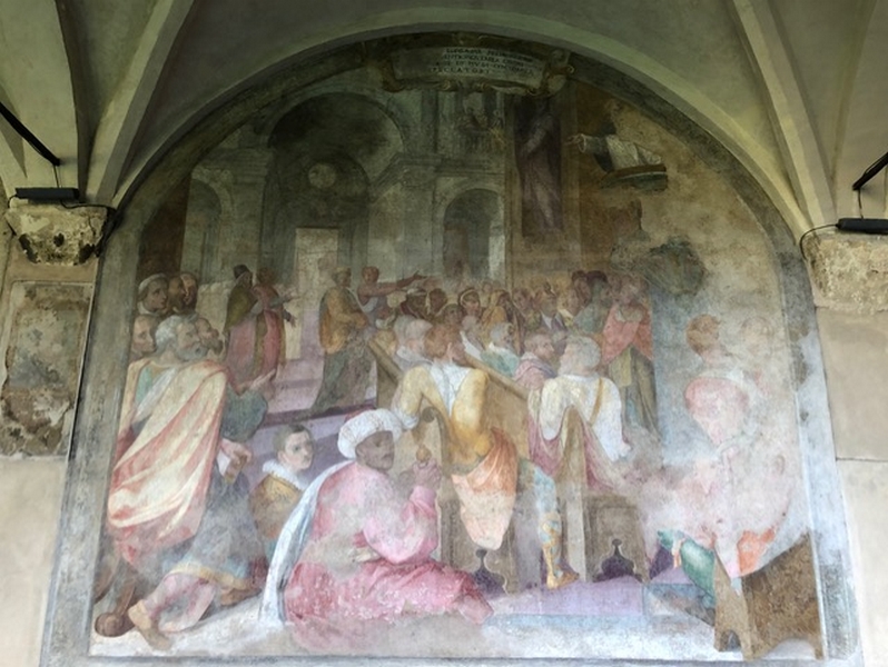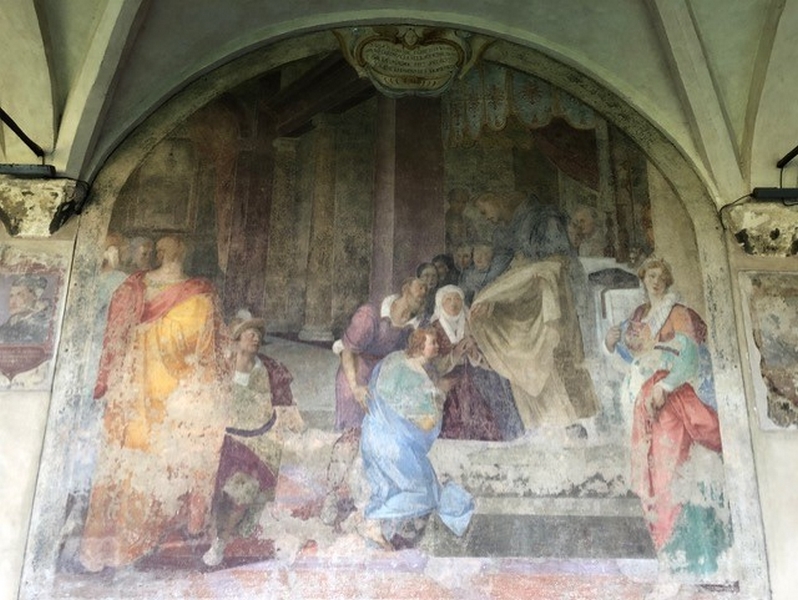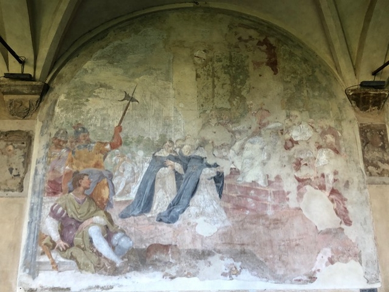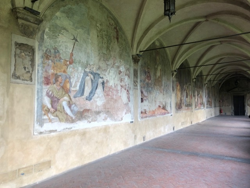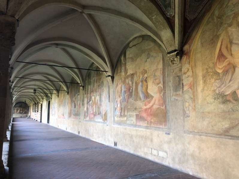 Nel secolo XVIII il Chiostro venne risistemato per quanto riguarda gli elementi lapidei e alcune lunette rimaste vuote vennero dipinte.