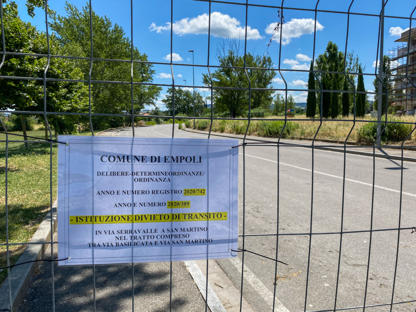 Chiusa al transito di tutti i tipi di veicoli e quindi anche alla loro possibile sosta Via Serravalle a San Martino, il tratto compreso tra Via Basilicata e Via San Martino. È il provvedimento preso tramite un’ordinanza della Polizia Municipale dell’Unione dei Comuni Empolese Valdelsa. Quel pezzo di strada, che va dalla rotatoria all’ingresso del Parco di Serravalle fino al caseggiato di San Martino a Pontorme, è una via che in queste settimane viene spesso utilizzata per parcheggiare veicoli e motocicli e quindi vi siano creano assembramenti di persone. La strada in questione può essere transitata sebbene sfoci in una strada sterrata che raggiunge alcune abitazioni. Stiamo parlando di un tratto con pochissimo traffico e per questo utilizzato, soprattutto in queste serate preestive, come ritrovo da numerosi giovani.