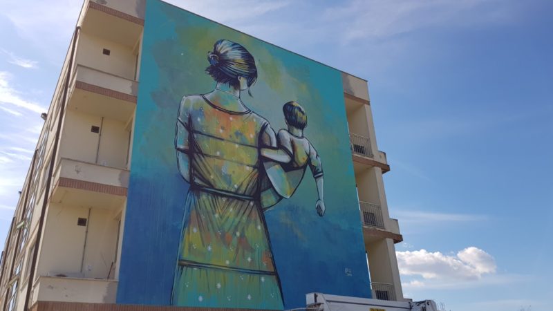 Una madre ritratta con in braccio il suo piccolo che guardano verso un orizzonte lontano. Vuole trasmettere un messaggio di solidarietà e speranza verso queste famiglie che, pur colpite da una dolorosa situazione, devono guardare al futuro con fiducia, nella consapevolezza che i loro figli sono affidati a strutture sanitarie di primaria importanza e di eccellenza universalmente riconosciuta. E' questo il messaggio che i Rotary Club Pisa e Rotary Club Galilei, sostenuti dal Distretto 2071 del Rotary Club International, intendono sottolineare nel murale che hanno fatto realizzare all'artista Alice Pasquini, tra le poche esponenti femminili affermate a livello internazionale tra i protagonisti del movimento street art.