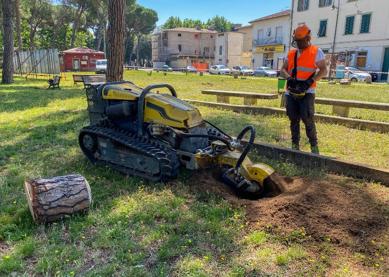 Al via questa mattina, lunedì 22 giugno, l’intervento che eliminerà le ceppe dei pini che furono tagliati nell’ottobre del 2017 in piazza Oreste Ristori.