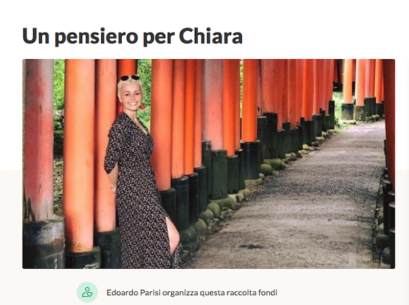 "Chiara è venuta a mancare il 19 giugno 2020 a causa di improvvise complicazioni dovute a questa tremenda malattia. Il fine di questa raccolta è supportare la ricerca per la lotta contro il cancro al seno, facendo in modo che la battaglia di Chiara e il suo altruismo non vadano persi" si legge nella descrizione della raccolta.