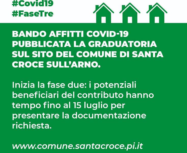 Il Comune di Santa Croce sull'Arno ha pubblicato in queste ore la graduatoria dei potenziali assegnatari dei contributi. Dal sito internet del Comune chi ha superato il primo step di questo percorso potrà fornire la documentazione che manca.