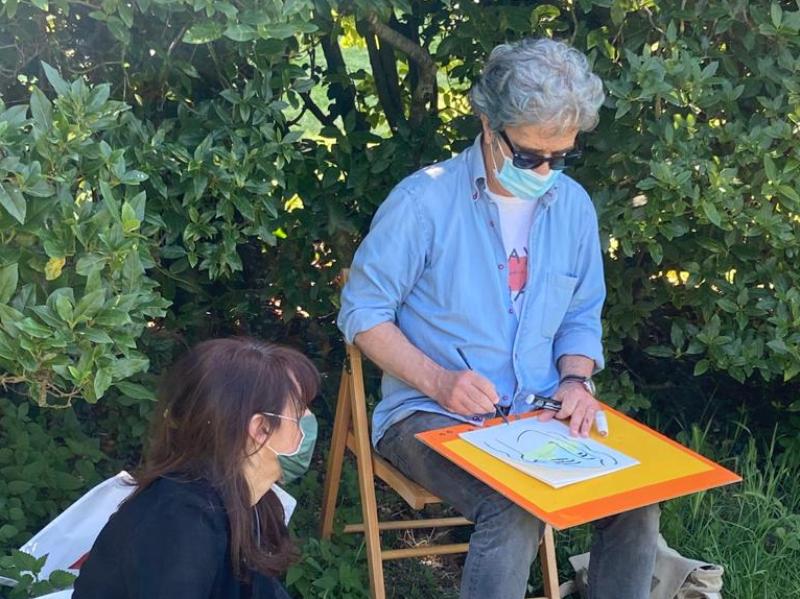 Durante l’incontro gli artisti Stefano Tonelli e Manus Del Testa hanno realizzato sul momento e regalato ai bambini i volti in attesa di un sorriso, opere poetiche e ricche di emozioni che aspettano di poter essere completate non appena la pandemia sarà finita.
