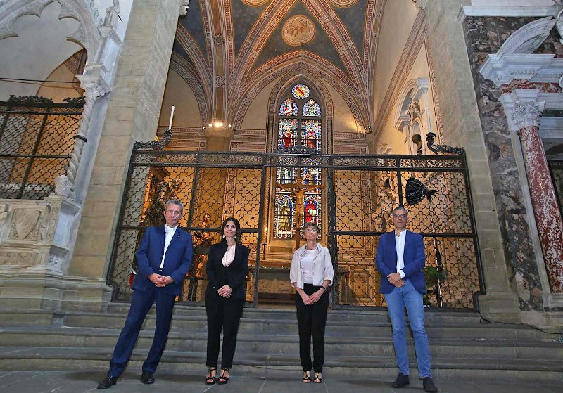 In Santa Croce sarà sperimentato un modello di visita speciale che si ispira al Grand Tour ottocentesco e permetterà l’incontro ravvicinato con spazi e opere normalmente non accessibili. L’Iniziativa, che sarà avviata nei giorni di mercoledì e venerdì a partire dal prossimo 8 luglio, è stata annunciata stamani - in occasione della riapertura dell’intero complesso monumentale - dalla presidente e dal vicepresidente dell’Opera di Santa Croce, Irene Sanesi e don Alessandro Andreini, con il segretario generale Stefano Filipponi. Presente anche il viceprefetto Alessandra Terrosi che ha sottolineato l’importanza degli sforzi delle istituzioni culturali per la ripartenza di Firenze.