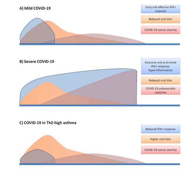Infine, nonostante che i Coronavirus, al pari di altre infezioni respiratorie virali, potrebbero essere causa di riacutizzazioni di asma, lo studio ha rilevato che questa particolare immunità, tipica di una elevata percentuale di forme di asma, possa controbilanciare gli effetti negativi delle risposte immunitarie con alta produzione di interferone, deleterie nelle forme gravi di COVID-19.