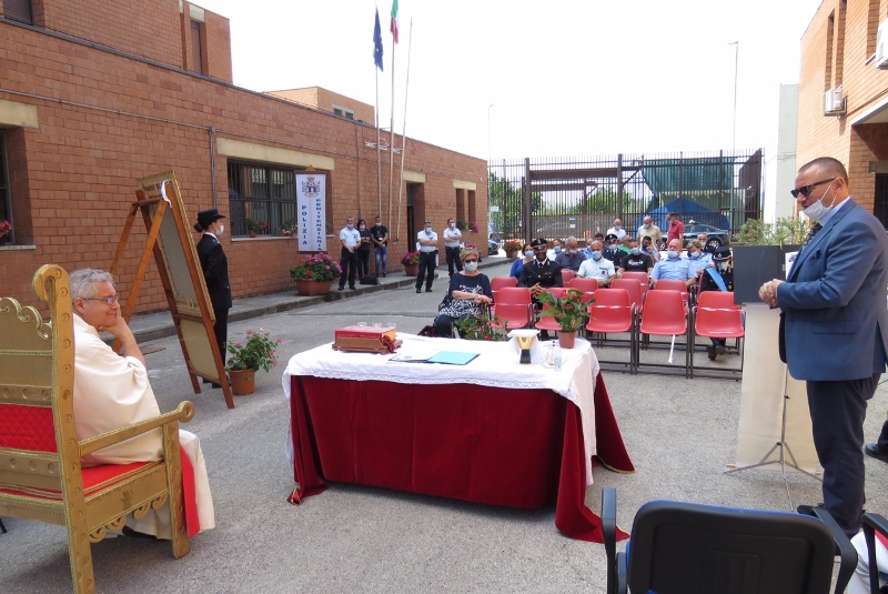 Presente alla celebrazione il cappellano don Enzo, che non ha mai mancato di far sentire la propria vicinanza ai detenuti e al personale di Polizia penitenziaria. Nel periodo legato all’emergenza coronavirus le celebrazioni delle messe con il popolo erano sospese, ma «ho continuato nell'assistenza di base e sono proseguiti i colloqui con i detenuti. È necessario non dimenticarsi mai di quanto sia logorante e impegnativo il lavoro degli agenti. Durante la settimana Santa per esempio mi è stato chiesto di fare qualcosa proprio per loro, e così abbiamo fatto un pomeriggio di adorazione e per Pasqua abbiamo iniziato la giornata con una preghiera e una benedizione insieme nel piazzale esterno della casa circondariale».