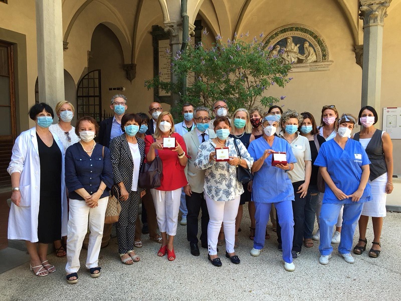 La foto di gruppo scattata per l’occasione nel chiostro delle Medicherie ritrae insieme, quali destinatari della massima onorificenza della città di Firenze, medici, infermieri, Oss, amministrativi, tecnici ospedalieri e del territorio, rappresentanti delle direzioni sanitarie, della Società della Salute di Firenze, dei medici di medicina generale e dei pediatri di libera scelta. Oltre che da Santa Maria Nuova, il personale che ha partecipato oggi proveniva anche dagli altri ospedali fiorentini dell’Azienda, Santa Maria Annunziata e San Giovanni di Dio ai cui direttori di presidio, sempre nei giorni scorsi, sono stati conferiti altri Fiorini d’Oro.
