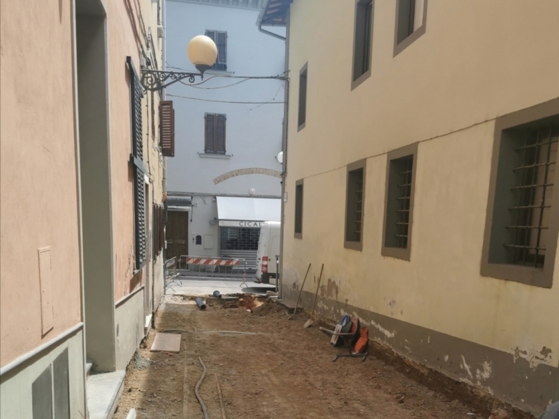 Dopo l'interruzione a causa della pandemia da Covid, sono ripresi i lavori per il rifacimento di via Checchi che si concluderanno alla fine di settembre con due mesi di ritardo rispetto alle previsioni iniziali, a causa della sosta forzata ma anche per realizzare la variante di via Pacini, il piccolo vicolo che collega piazza Amendola a corso Matteotti, spazio breve ma suggestivo che vedrà la completa lastricatura con le antiche pietre recuperate da via Checchi. Mentre si concluderanno questi lavori, partirà la progettazione preliminare per definire lo schema architettonico di piazza Amendola con la suddivisione tra aree pedonali, posti auto e accesso al palazzo comunale ma anche per definire nel dettaglio le risorse economiche necessarie alla realizzazione.