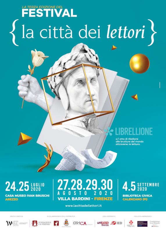 Il festival La città dei lettori è ideato e curato dall’Associazione Culturale Wimbledon con la direzione di Gabriele Ametrano, la collaborazione e il contributo di Fondazione CR Firenze, Fondazione Parchi Monumentali Bardini e Peyron, Comune di Calenzano e Biblioteca Civica di Calenzano, il sostegno di Unicoop Firenze e IED Firenze, la gentile collaborazione dell’Estate Fiorentina 2020 del Comune di Firenze e della Fondazione Casa Museo Ivan Bruschi amministrata da Ubi Banca.