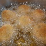 Proseguite così fino a terminare il riso. Man mano che formate gli arancini, poneteli su un foglio di carta da forno. Nel frattempo mettete l’olio a scaldare per la frittura. Se avete una friggitrice è ancora meglio ! Fate roteare ciascun arancino nel pane grattugiato, nella versione di Laura per rendere più ricca l'impanatura ha utilizzato due uova con l'aggiunta di pepe, un pizzico di sale e paprica poi a sbattuto il tutto e ha passato ogni arancino prima nella farina, poi nell'uovo e infine nel pane grattugiato. Dopo immergete gli arancini nell’olio caldo a 175°. Laura ne ha messi 3 alla volta, in modo da non abbassare troppo la temperatura dell’olio. Friggeteli con cura finché saranno dorati. Più o meno le sono serviti circa 8 minuti per volta. Estraeteli con una schiumarola e asciugateli nella carta assorbente. Gli arancini con prosciutto e mozzarella sono pronti per essere serviti !