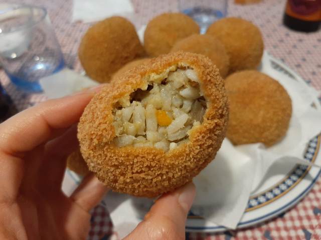 Ho trovato una curiosità sull'origine degli arancini, la Sicilia è stata invasa dagli arabi in un periodo molto vasto che va all'incirca dall'827 fino al 1091. In questo periodo ci sono state delle contaminazioni culturali ma anche culinarie. Gli arabi avevano l'abitudine di arrotolare il riso nel palmo della mano e condirlo con carne di agnello, da lì è partita l'evoluzione di questo piatto. Se andate in Sicilia gli arancini li potrete gustare in ogni friggitoria e in tanti varianti a seconda del posto dove vi troverete.