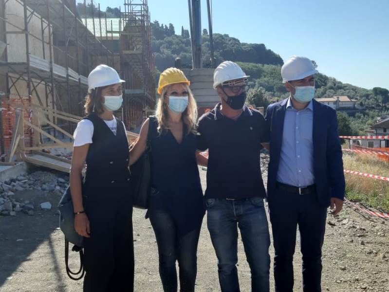 Questa mattina il sindaco Simone Calamai ha presentato l'avanzamento lavori del nuovo asilo nido di Morecci. Il cantiere è finalmente arrivato alla copertura dell'edificio, che ora dovrà essere completato con un rivestimento in lamiera. L'asilo, costruito nel verde tra gli ulivi della zona collinare a due passi dal centro, proprio dietro la scuola primaria “Alberto Manzi”, rappresenta una delle azioni del Progetto Piu del nuovo centro cittadino. Nonostante il Covid i lavori non si sono mai fermati del tutto. Nelle lunghe settimane del lockdown il cantiere è stato chiuso, ma sono andate comunque avanti le lavorazioni delle pannellature in legno lamellare all'interno delle officine specializzate, che hanno consentito, con la riapertura delle attività, di montare velocemente tutta la struttura. L'asilo nido di Morecci infatti è un importante esempio di edificio in eco-materiali, realizzato con le tecniche della bio-architettura e in particolare con la tecnologia “platform” ( sistema costruttivo per case in legno nato in Nord Europa in cui ogni piano funge da piattaforma per i piani superiori). Nonostante lo stop forzato a causa del Coronavirus, la struttura dovrebbe essere completata entro la fine dell'anno, rispettando così la tabella di marcia iniziale.