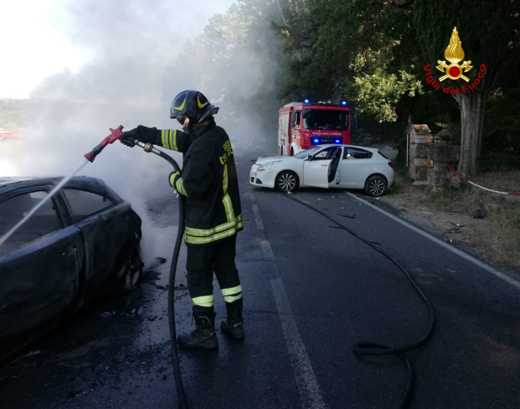 I vigili del fuoco di Poggibonsi nono intervenuti poco dopo le ore 18 per l'incendio di un'auto a seguito di incidente stradale in via Sottobosco a Ulignano (San Gimignano). Gli occupanti all'arrivo della squadra dei pompieri erano già stati presi in carico dai sanitari del 118 per gli accertamenti del caso. Sul posto anche Carabinieri e Polizia Municipale.