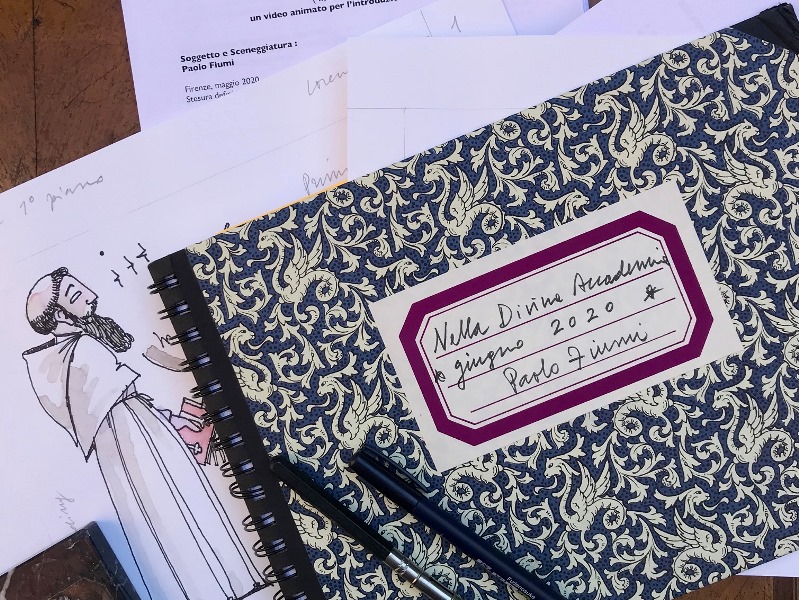 Nella Divina Accademia. Parlano gli artisti è un video animato, leggero e divertente, nato da un’idea di Cecilie Hollberg, direttore della Galleria dell’Accademia, realizzato per presentare il museo a un pubblico più ampio, dai più giovani ai più grandi. Soggetto e sceneggiatura sono di Cecilie Hollberg insieme all’architetto Paolo Fiumi che ne ha curato anche le illustrazioni. Il video è visibile dal link https://youtu.be/16AU1wSIVOk.