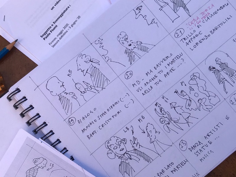 Nel video, a condurre le danze e a orchestrare queste strane creature notturne - in procinto di allestire una festa per il giorno di San Luca, santo patrono dei pittori, con tanto di banchetto, ghirlande di fiori e musica - è il grande Michelangelo Buonarroti che si affaccia nella Tribuna da dietro il tronco sul quali si appoggia il polpaccio della statua del David. E con lui Lorenzo Monaco, Taddeo Gaddi, Andrea Orcagna, Sandro Botticelli, Domenico Ghirlandaio, Alessandro Allori, Pontormo, Bronzino, Antonio Stradivari, Bartolomeo Cristofori, Lorenzo Bartolini, a rappresentare le diverse anime storico-artistiche che compongono il patrimonio del museo.