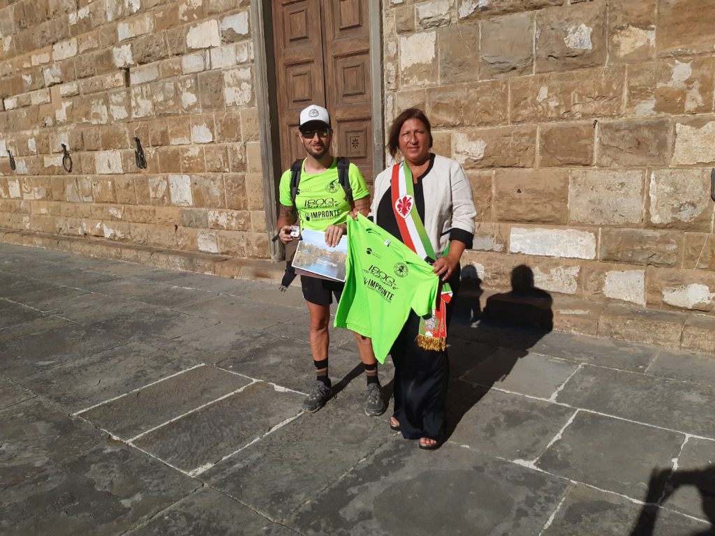 La vice presidente del Consiglio comunale Maria Federica Giuliani ha ricevuto sull'arengario di Palazzo Vecchio Alberto Turra, dipendente del Comune di Palazzolo sull'Oglio in provincia di Brescia. partito da piazza Maggiore a Bologna e che ha percorso 140 chilometri, lungo la Via degli Dei, per ricordare i 140 morti, causati da Coronavirus, avvenuti nel suo Comune.
