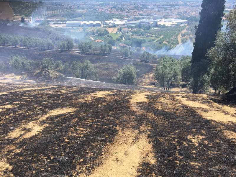 Incendio nei campi di Petroio, frazione di Vinci, attorno a mezzogiorno di oggi, lunedì 13 luglio. Il rogo si è propagato da delle olivete e sul posto sono presenti i vigili del fuoco di Empoli, la Vab e i carabinieri forestali. Le fiamme, a causa del vento, si sono spostate dalla zona della chiesa, rendendo più lungo lo spegnimento. Non c'è ancora una stima di quanti ettari di terra sono andati in fumo.