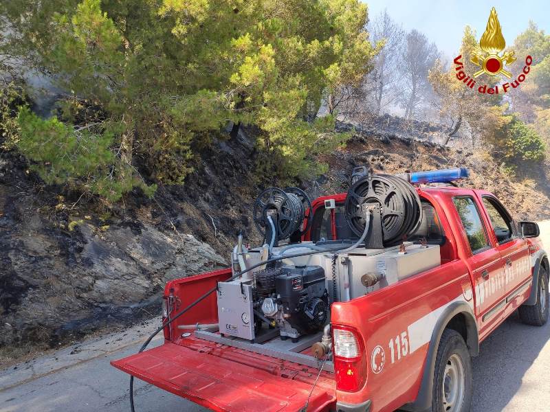 Sul posto inoltre Carabinieri Forestale per indagini sull'origine dell'incendio.
