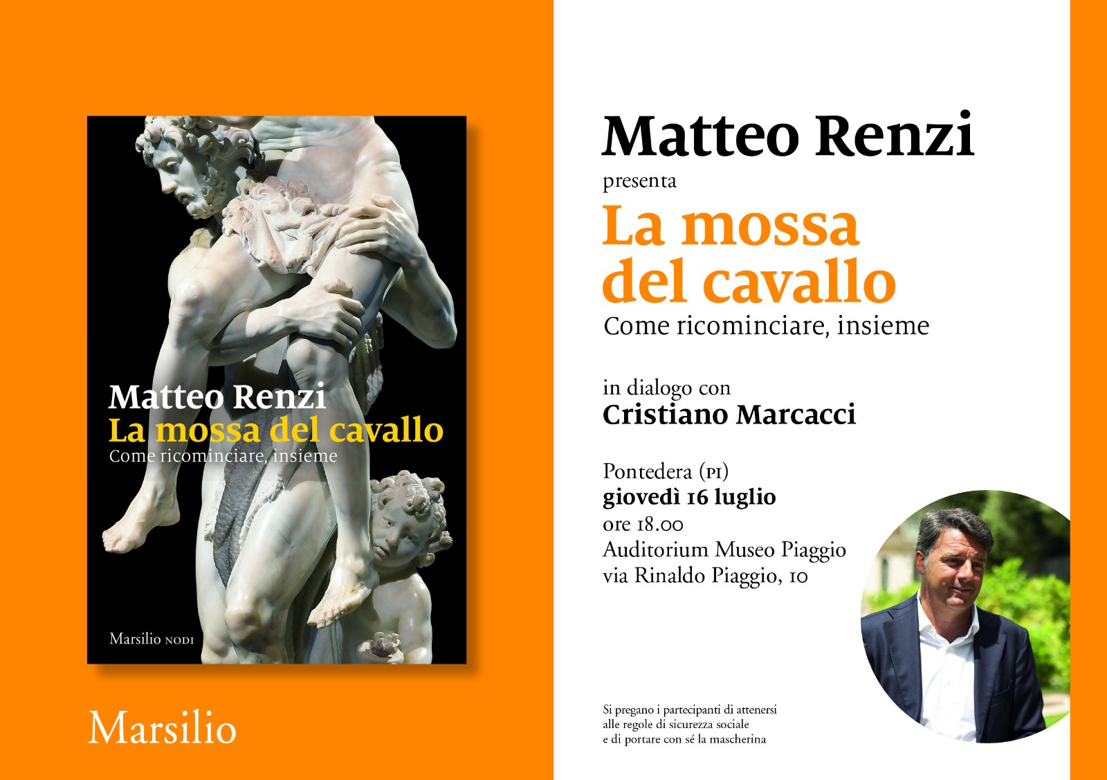Il Comitato di Italia Viva Pontedera, Pontedera Europa, annuncia che giovedì 16 Luglio alle 18 presso l'auditorium del Museo Piaggio di Pontedera, il senatore Matteo Renzi, già Presidente del Consiglio dei Ministri, presenterà il suo libro dal titolo "La mossa del Cavallo".