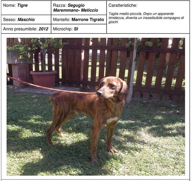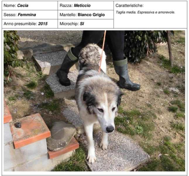"Voglio segnalare cinque cani, molto carini fra l’altro, che sono disponibili per l’adozione e momentaneamente ospitati nel canile “Parco Verde” di Lari, convenzionato con il nostro Comune. Sul sito internet del Comune si possono trovare le schede con foto dei cani e il regolamento per le adozioni, inoltre l’Ufficio Ambiente (0571 699233) il martedì/giovedì/sabato dalle ore 10 alle 12 fornisce tutte le informazioni.