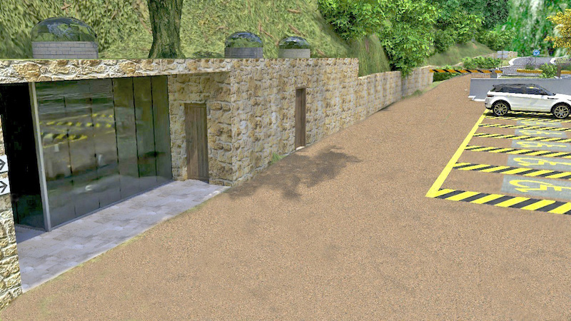 2) Realizzare un parcheggio per sole autovetture con aumento dei posti attualmente disponibili, sfruttando i dislivelli esistenti per l’inserimento di strutture modulari in acciaio ad un solo livello;