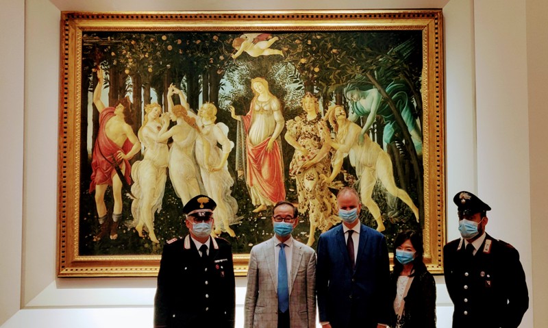 L'ambasciatore del Giappone in Italia Hiroshi Oe in visita ufficiale alla Galleria degli Uffizi di Firenze. Oe era già stato nel celebre museo 40 anni fa: oggi, a Firenze per partecipare ad un evento internazionale, non ha voluto perdere l'occasione di tornare ad ammirarne i tanti capolavori in maniera approfondita e scoprire le nuove sale. Accolto in galleria dal direttore Eike Schmidt, l'ambasciatore si è soffermato in particolare nelle sale di Botticelli, concedendosi qualche scatto davanti alla Primavera.