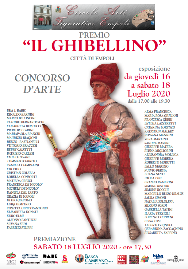 Sara fatta in piazza Farinata degli Uberti, di fronte al Palazzo Ghibellino dove ha sede il Circolo Amatori Arti Figurative, sabato 18 luglio alle ore 17,30 la premiazione del 9° Concorso Nazionale d'Arte "Il Ghibellino, città di EMPOLI".