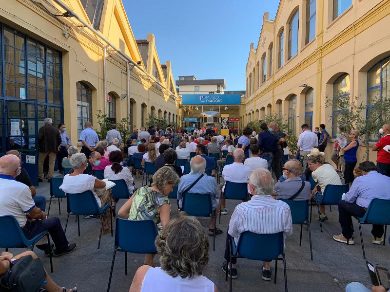 Questa sera alle 18 c'è stata un'ora dell'aperitivo diversa a Pontedera, senza cocktail ma con il leader di Italia Viva, ex sindaco di Firenze e presidente del consiglio. Riuniti al Museo Piaggio in molti hanno aspettato, chi a sedere su sedie distanziate e chi in piedi, Matteo Renzi per la presentazione del suo libro 'La mossa del cavallo - Come ricominciare, insieme'. Pontedera è stata la tappa toscana per la presentazione del libro dopo Chiusi e Prato. Presenti persone di tutte le età, anche giovanissimi, oltre ai vertici di Piaggio, l'assessore al diritto alla salute della Regione Toscana Stefania Saccardi accanto ad altre autorità nelle prime file e le forze dell'ordine a vigilare la manifestazione all'aperto nell'auditorium del Museo della famosa vespa pontederese.