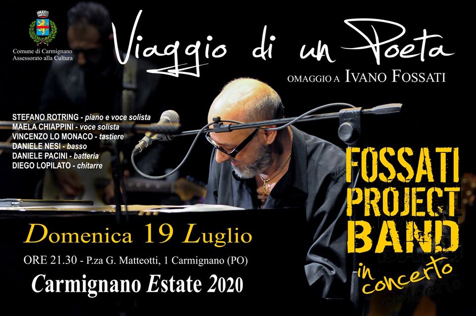Domenica 19 luglio alle 21.30 in piazza Matteotti a Carmignano si terrà il concerto “Viaggio di un poeta”, omaggio ad Ivano Fossati. A suonare sarà la Fossati Project Band, unica band in Italia che porta in scena uno spettacolo artistico dedicato alla musica di Ivano Fossati. In contemporanea, sarà allestito il mercatino IoCreo.