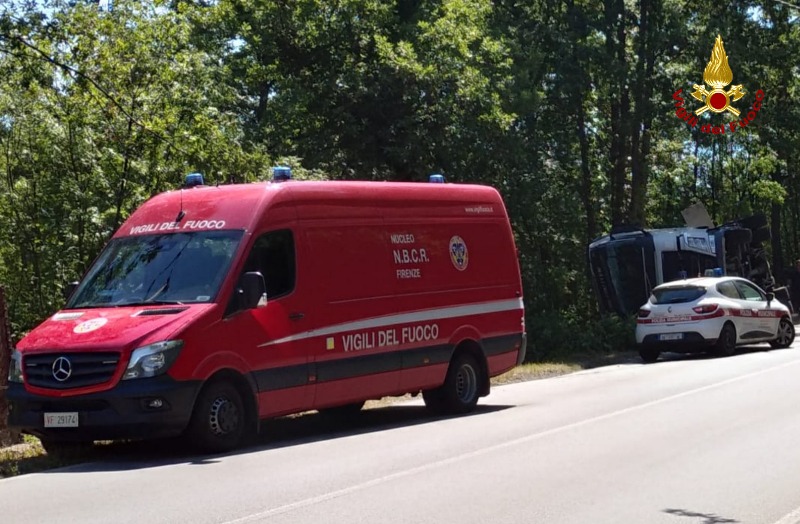 Autocisterna ribaltata a Fucecchio, nessuno sversamento