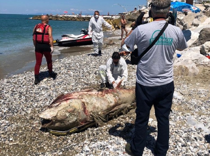 Recuperata a Marina di Pisa carcassa di tonno spiaggiata