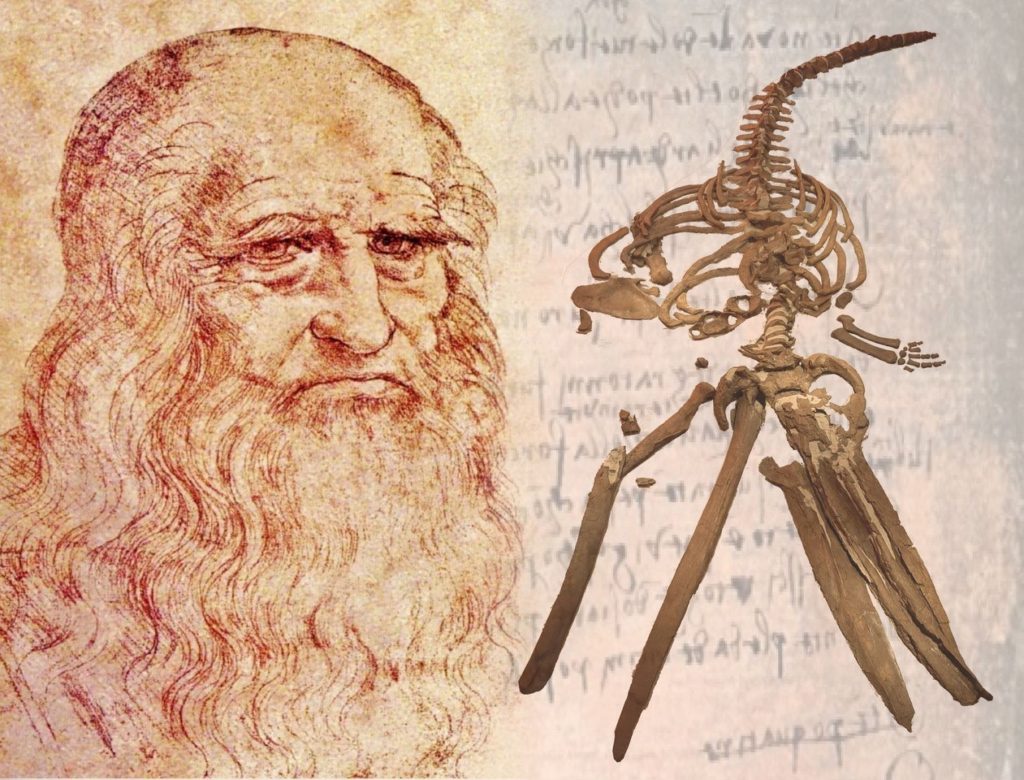 Pittore, scultore, disegnatore, architetto, anatomista, ingegnere e filosofo: così è universalmente conosciuto Leonardo da Vinci che, può essere considerato anche uno dei precursori della moderna geologia per come descrisse e interpretò le rocce stratificate, giungendo persino a capire la vera natura dei fossili, rigettando il ruolo del Diluvio Universale come spiegazione per il rinvenimento di conchiglie in rocce affioranti nelle aree montane e a grande distanza dalla costa. La recente analisi di un passaggio contenuto nel famoso Codex Arundel – un'imponente raccolta di manoscritti leonardiani autografi conservata presso la British Library di Londra – suggerisce che le riflessioni di Leonardo sulla geologia e in particolare sui fossili potrebbero essere state ancora più ampie, includendo anche i vertebrati marini: Leonardo si dimostra, pertanto, anche precursore della Paleontologia dei Vertebrati, oltre 300 anni prima di George Cuvier, il grande naturalista francese padre di questa disciplina.